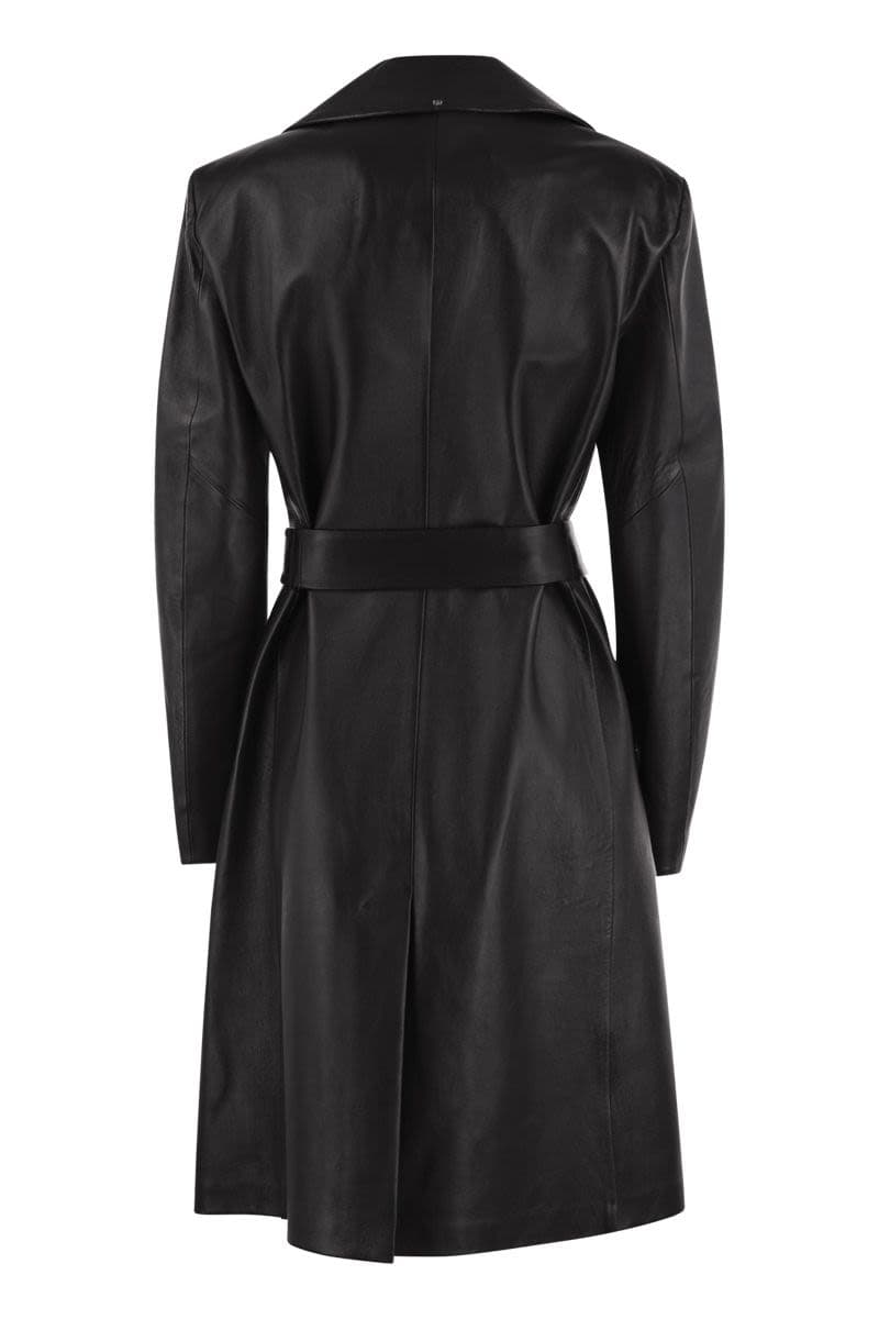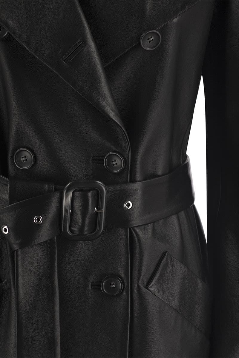 MAX MARA SPORTMAX Luxury Soft Leather Trench Coat with Geometric Pockets