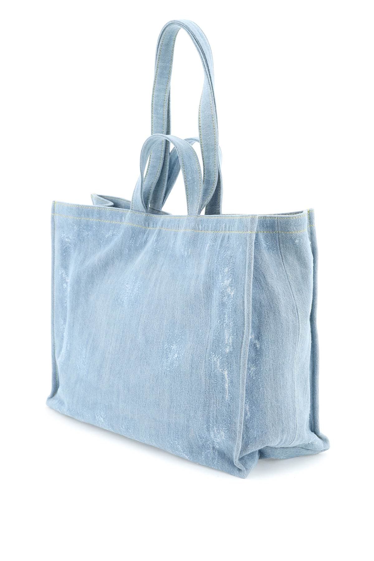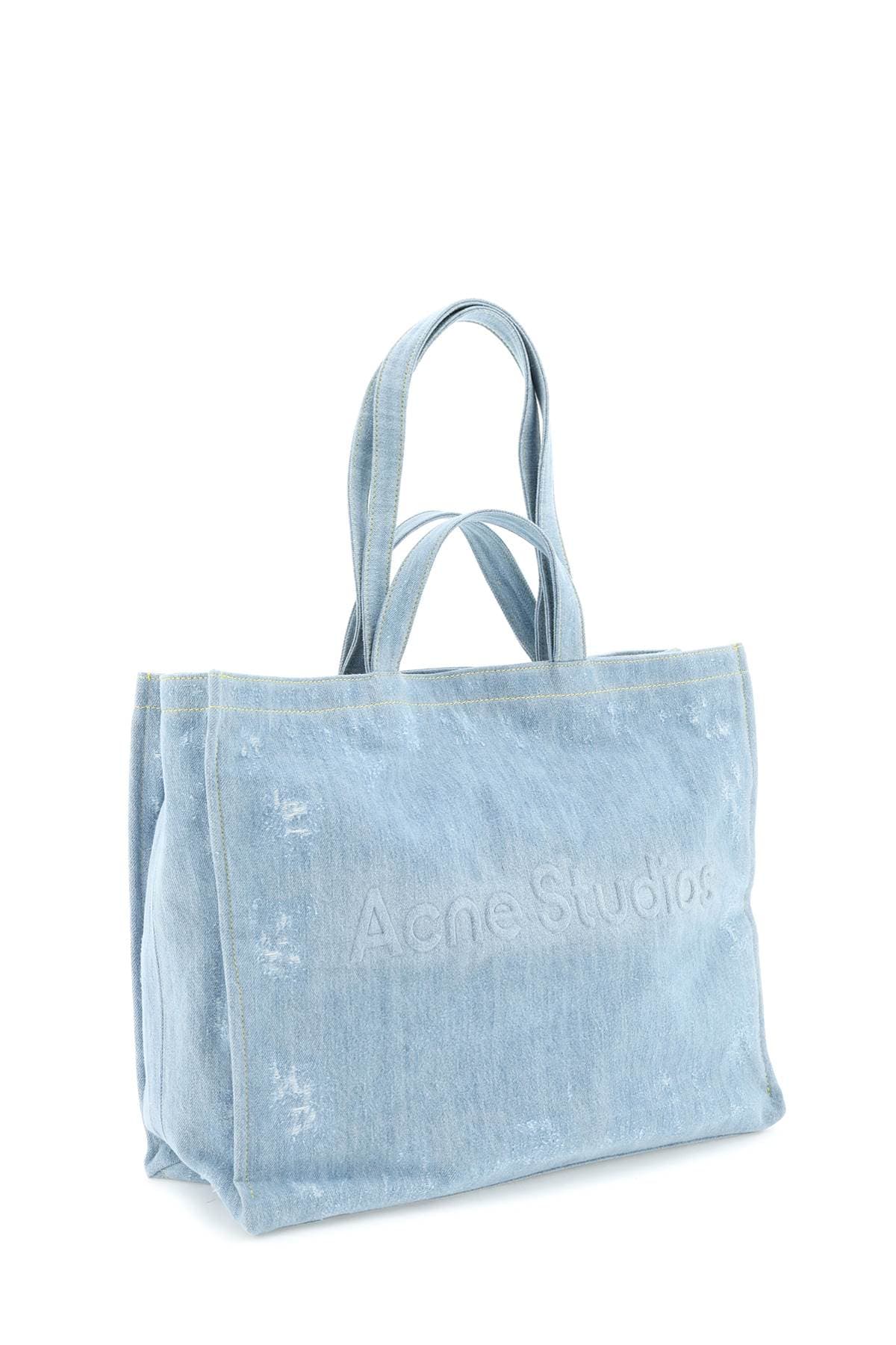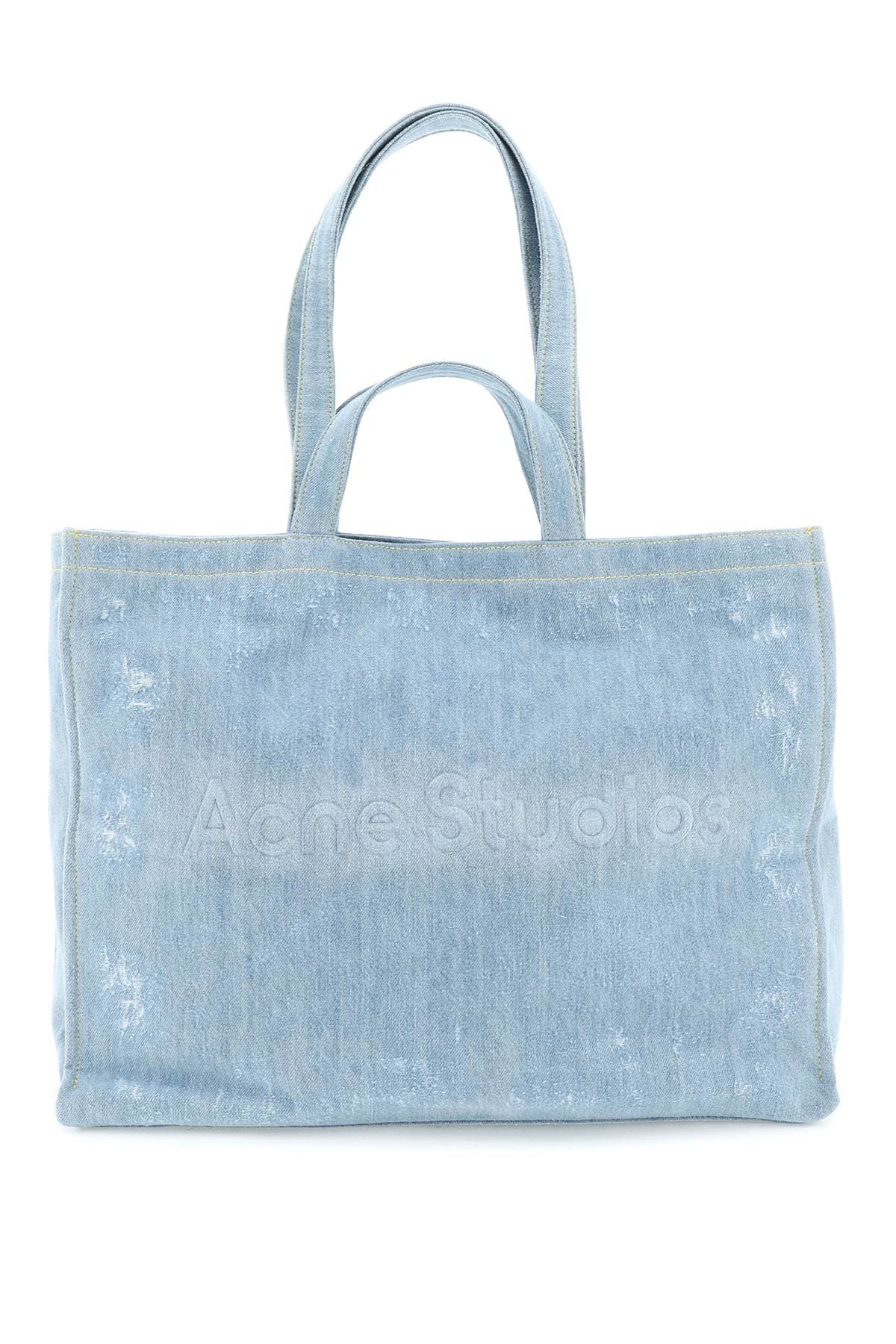ACNE STUDIOS Mini Denim Tote Handbag with Logo - Double Top Handle