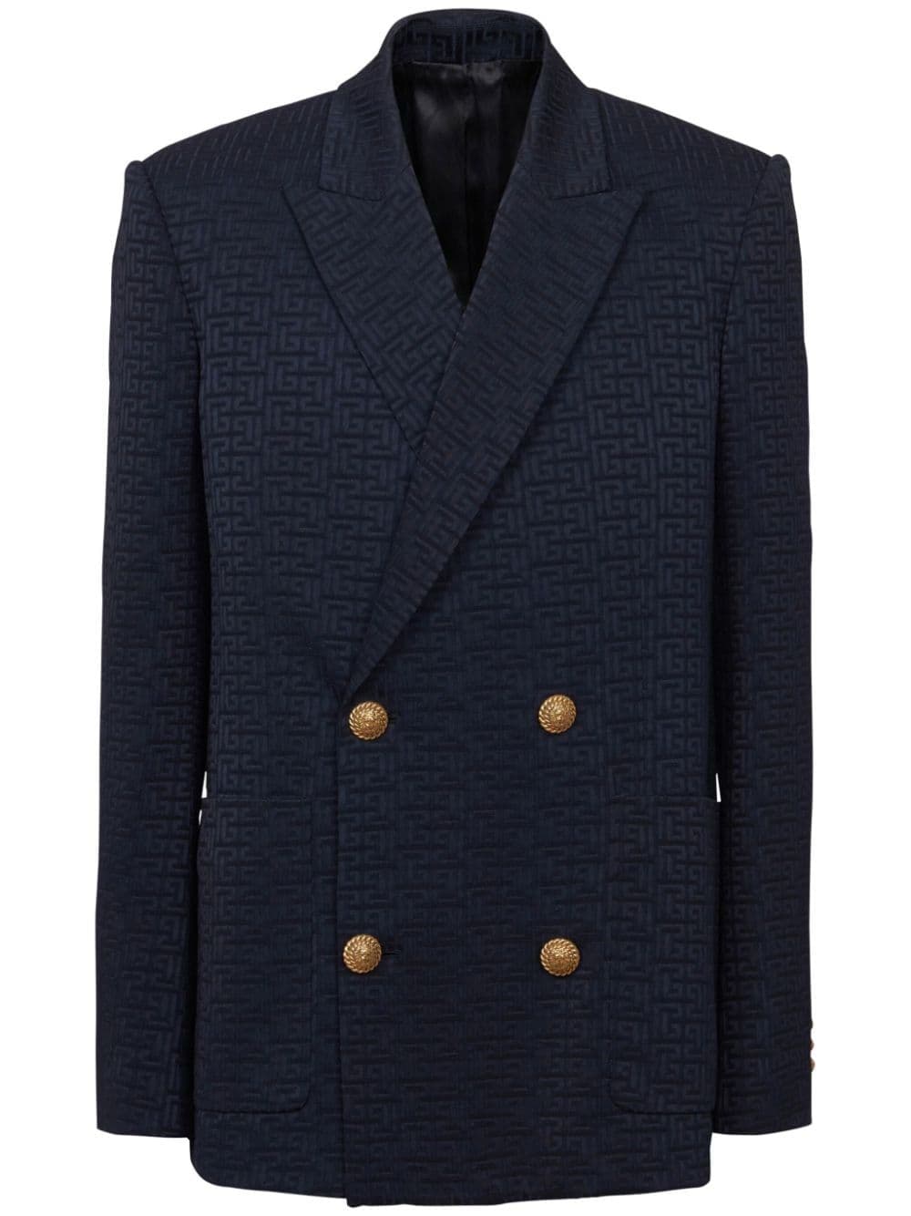 BALMAIN Elegant Navy Monogram Satin Blazer