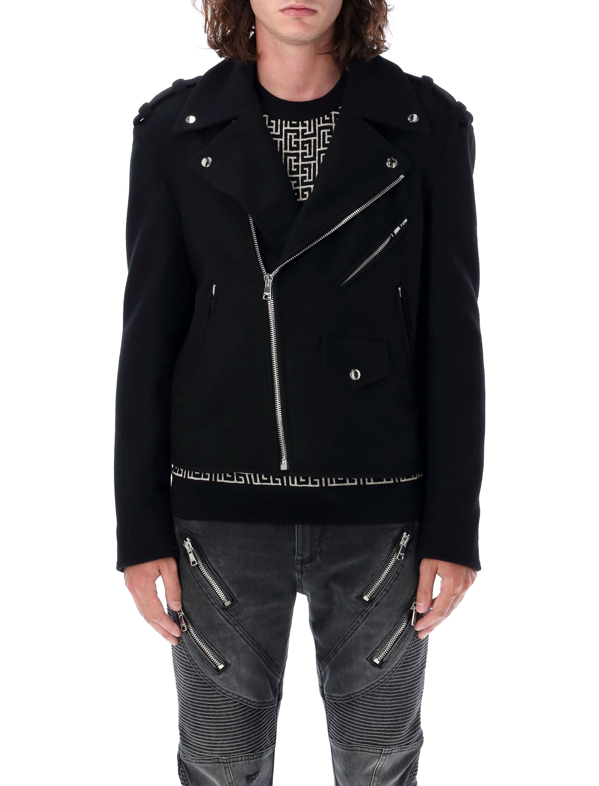 BALMAIN Modern Biker Wool Jacket