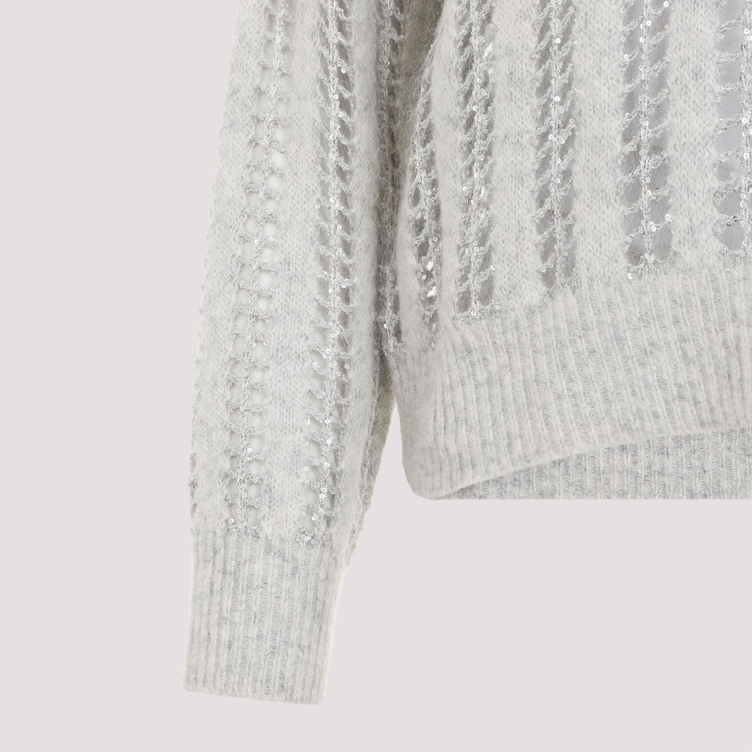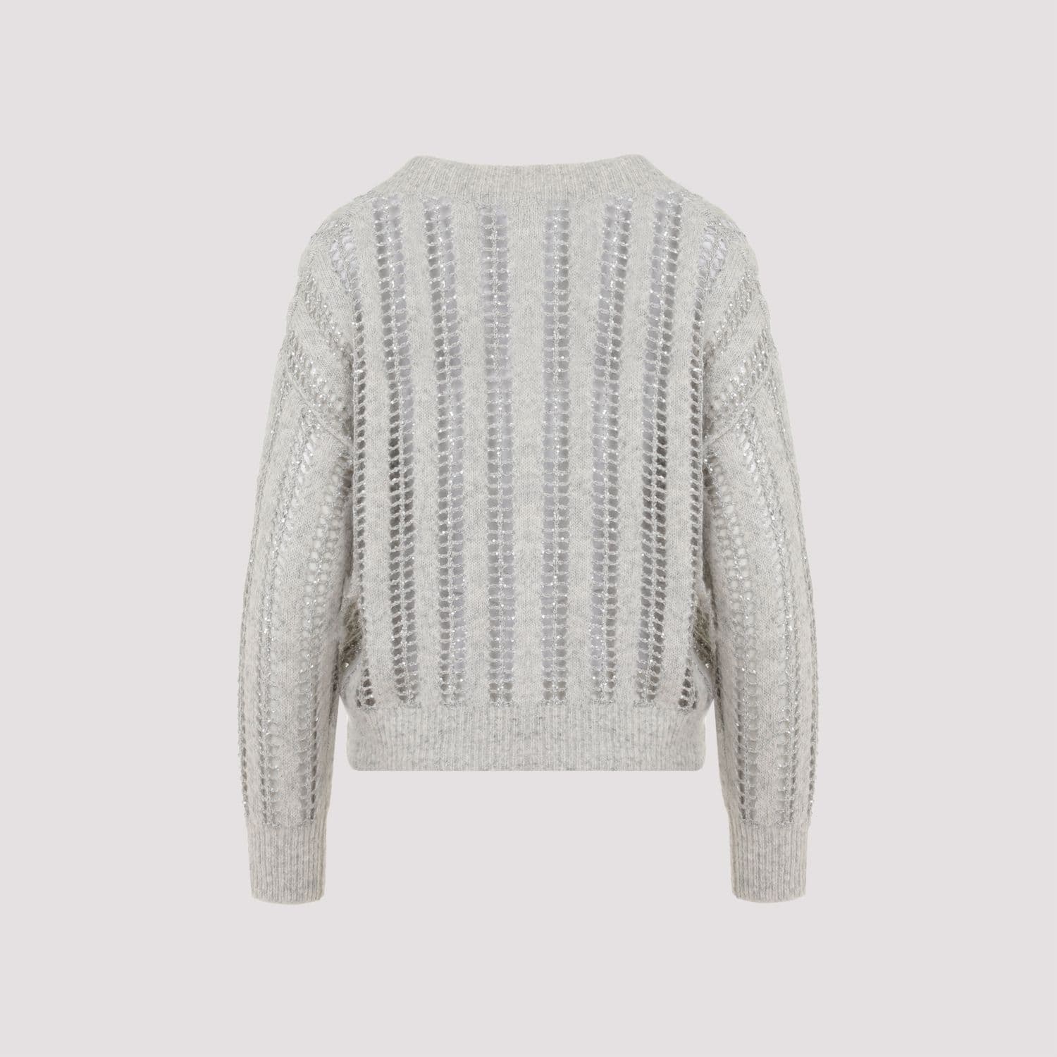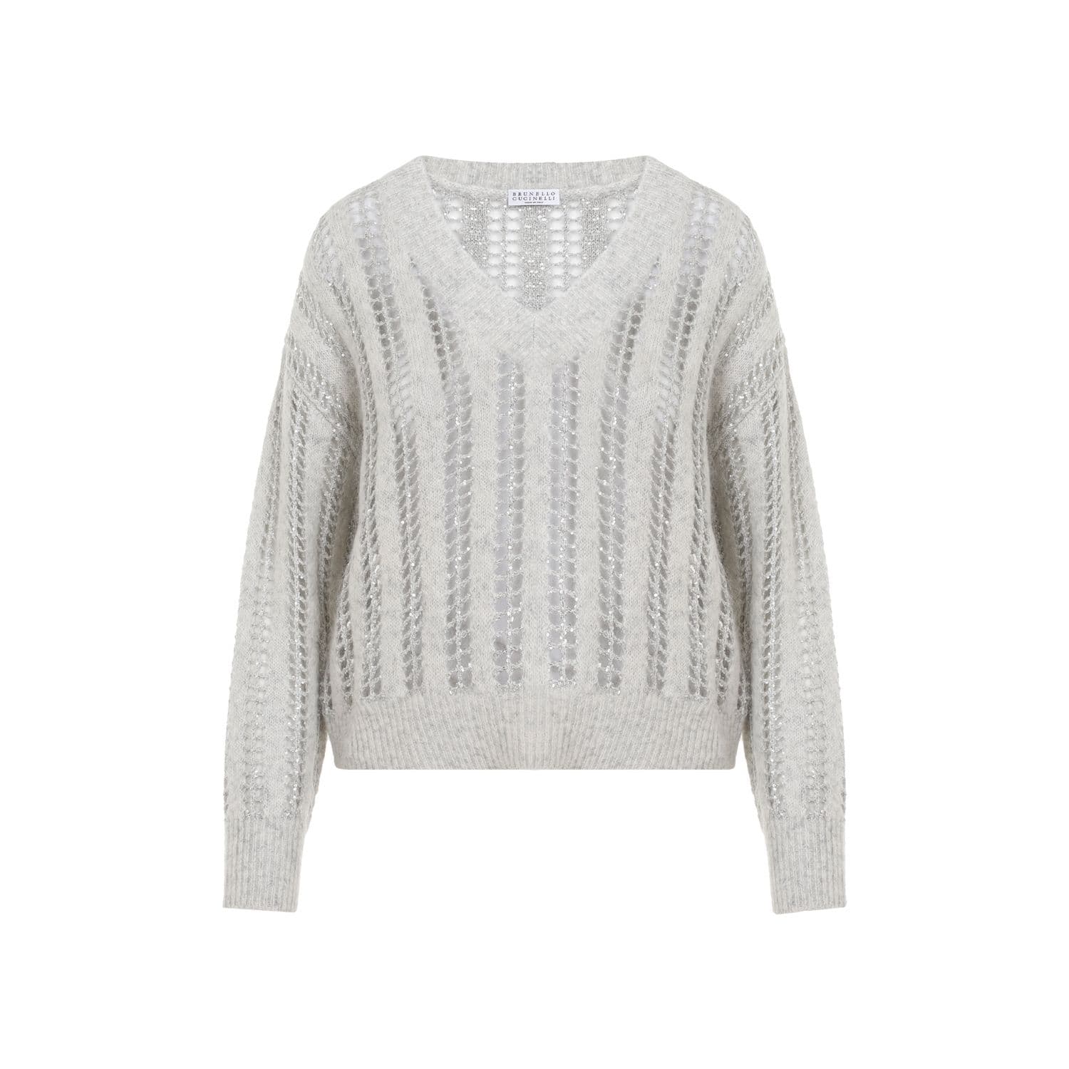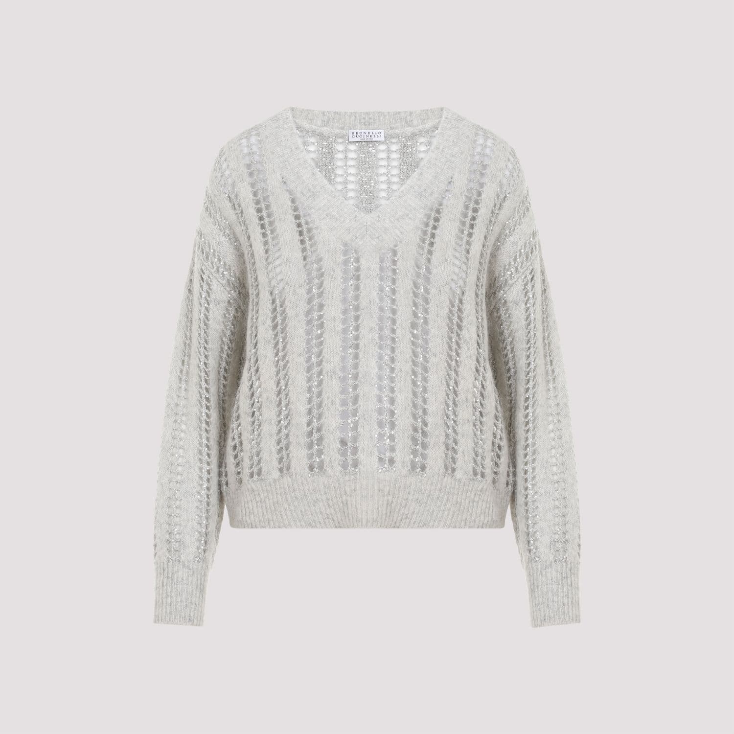 BRUNELLO CUCINELLI Elegant Wool-Mohair V-Neck Sweater with Mesh Design