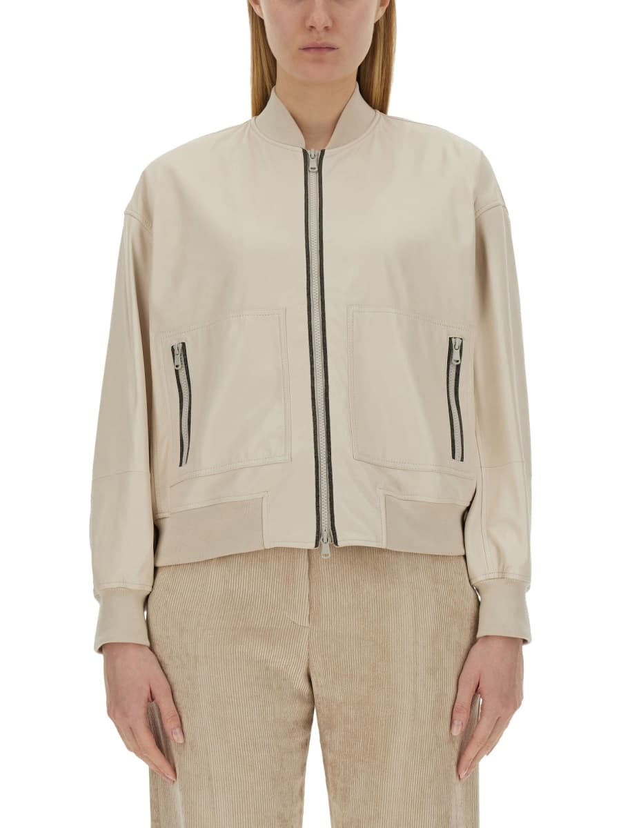 BRUNELLO CUCINELLI Women's Leather Bomber Jacket - Size 40 IT