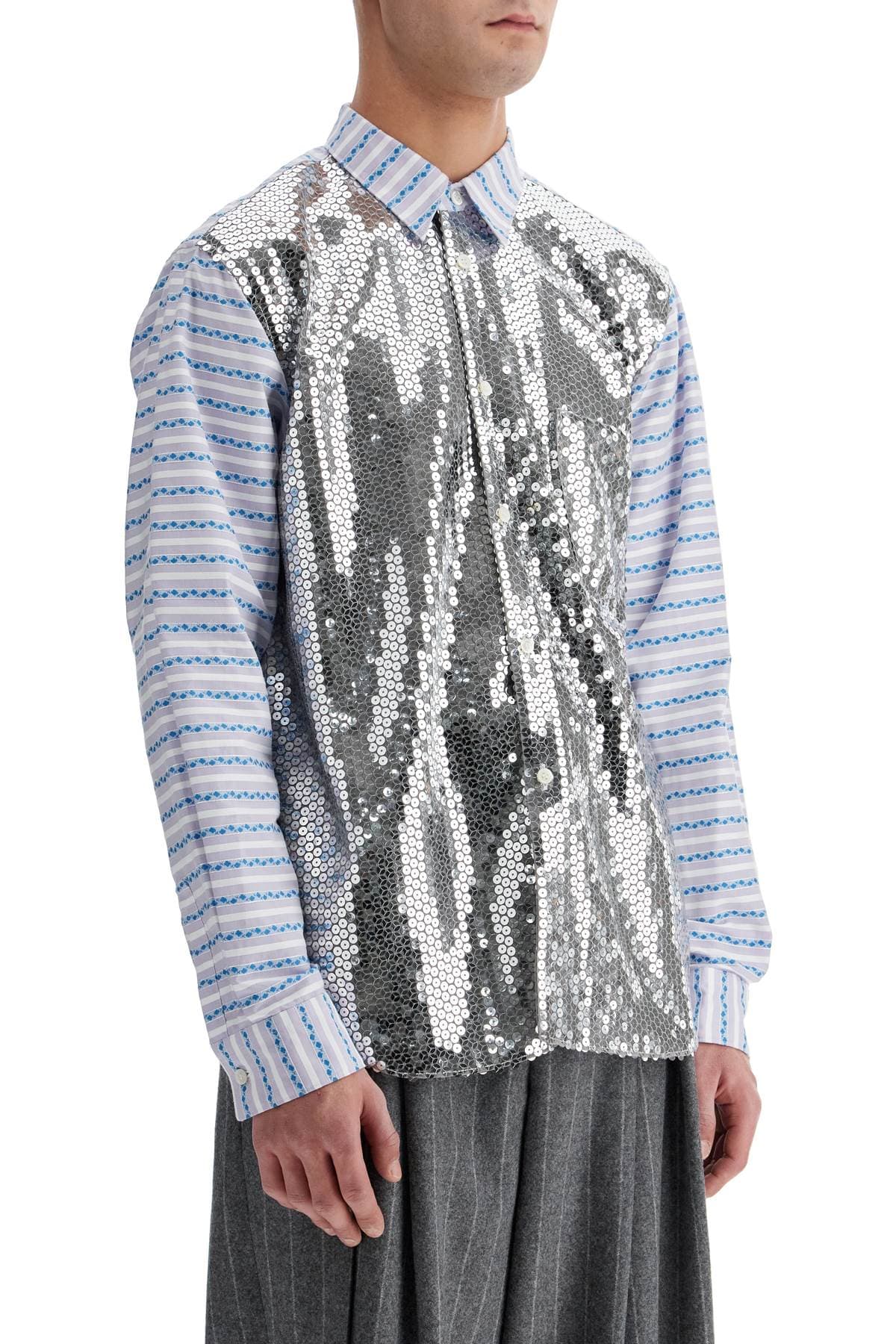 COMME DES GARÇONS HOMME PLUS Jacquard Striped Shirt with Sequin Detail - Medium