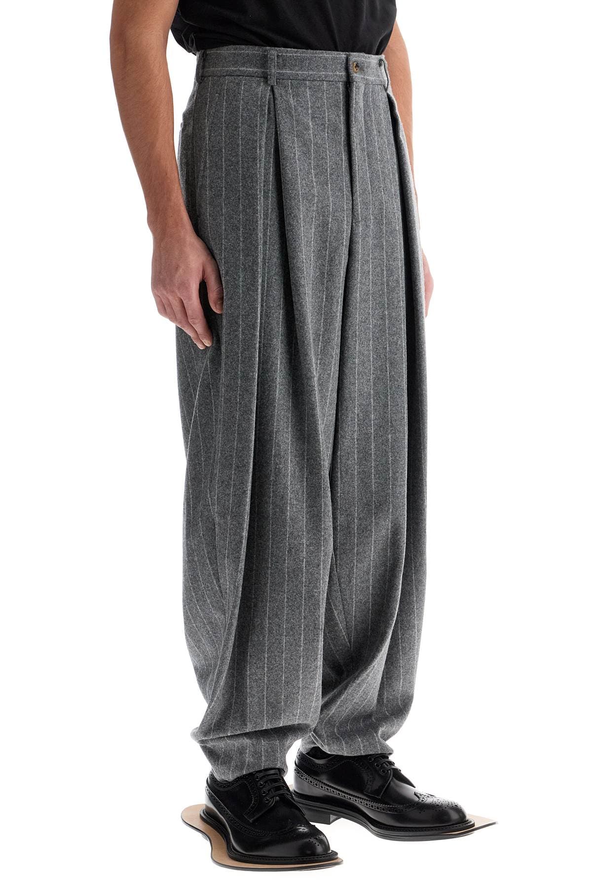 COMME DES GARÇONS HOMME PLUS Striped Wool Trousers - Wide Tapered Cut