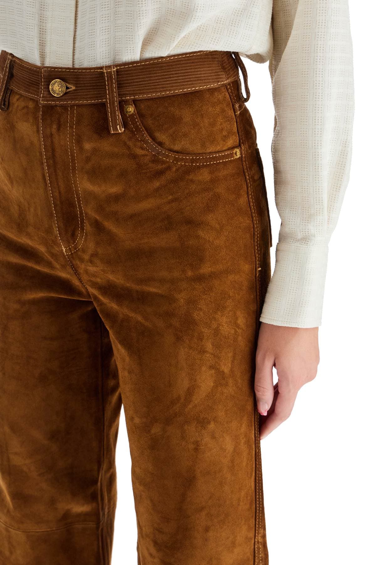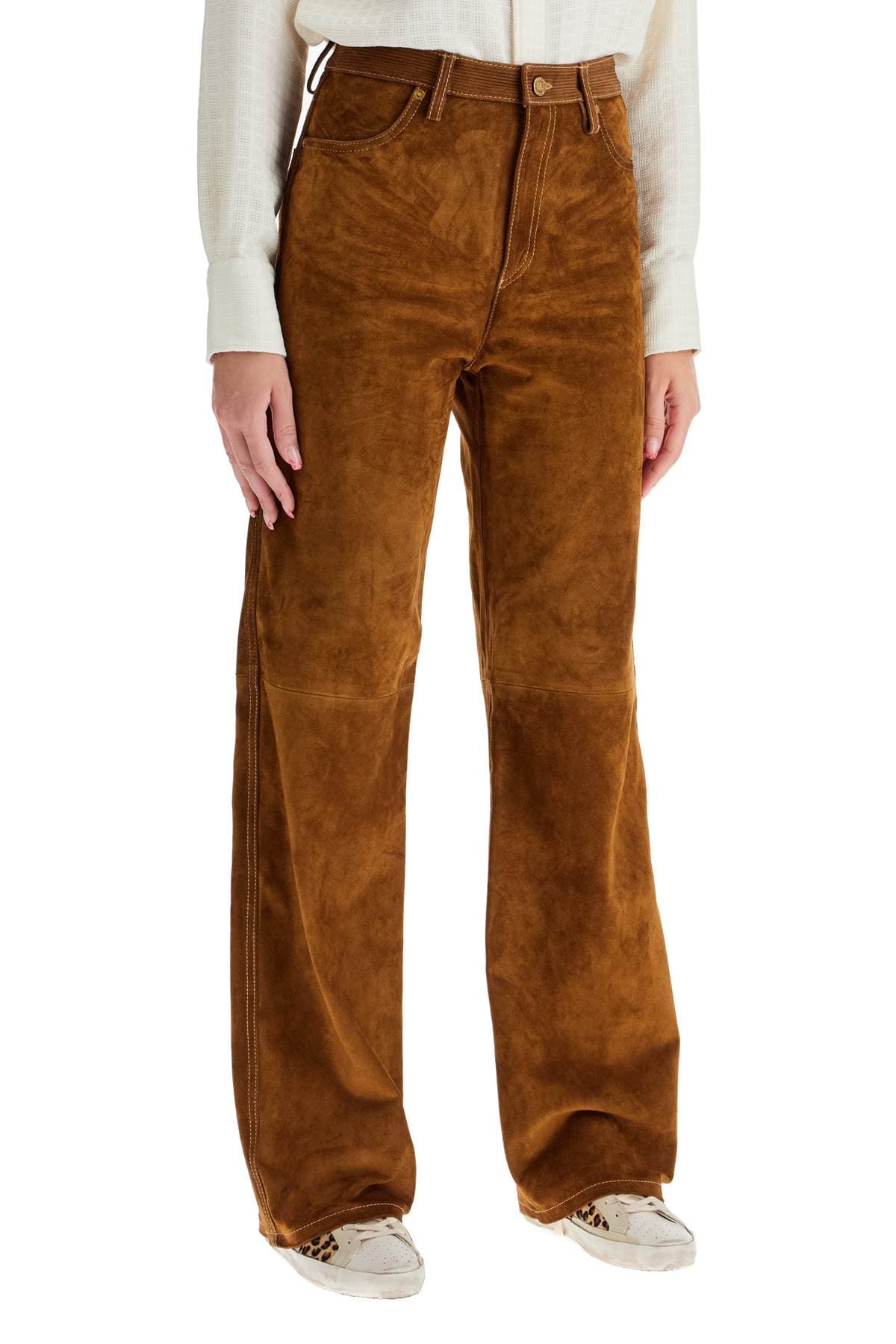 GOLDEN GOOSE Luxurious Suede Leather Straight-Leg Pants