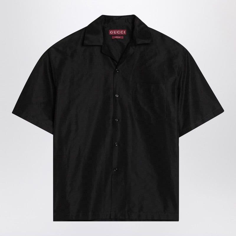 GUCCI Silk Blend Shirt with GG Pattern for Men - Short Sleeves, Bowling Collar