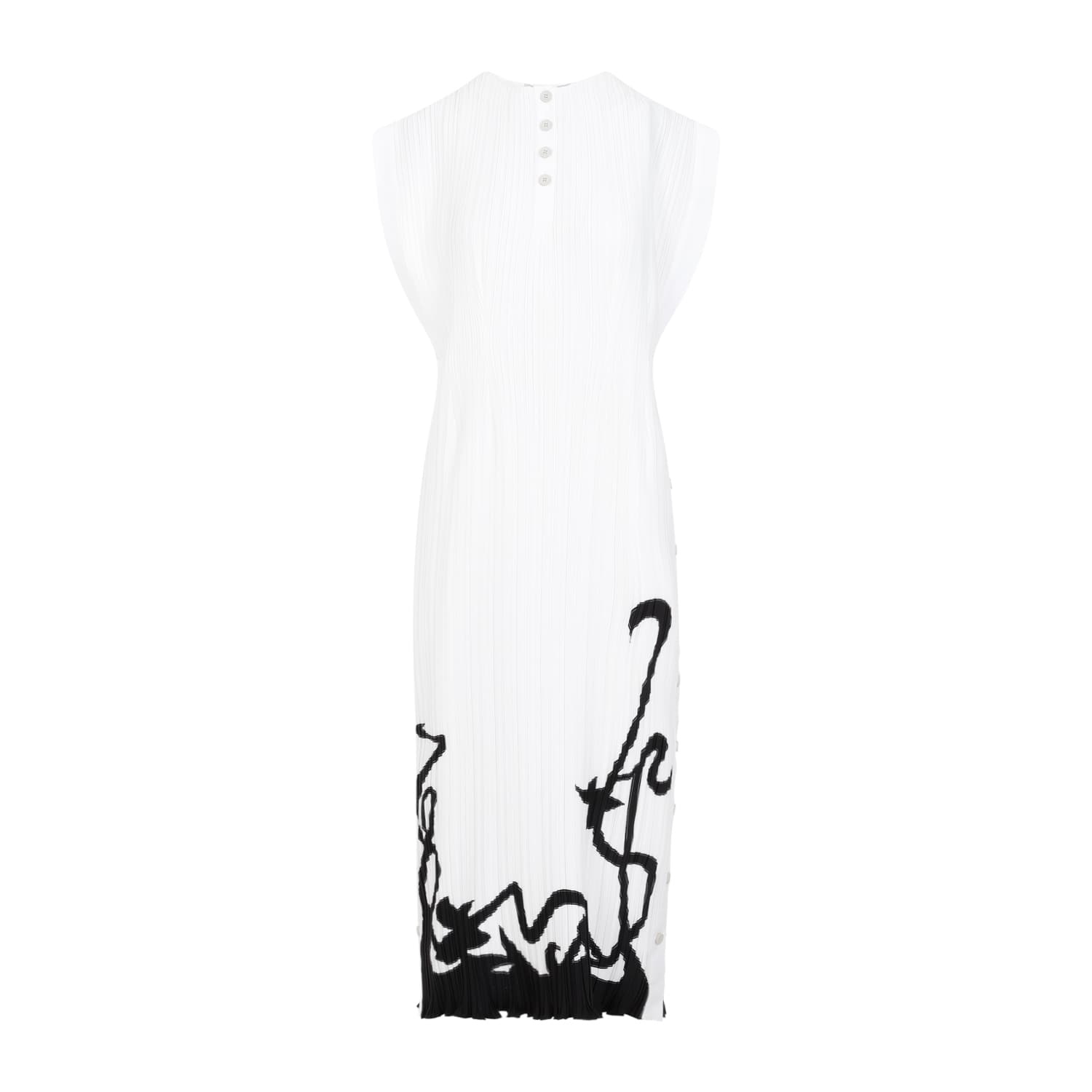 LANVIN Sleeveless Midi Dress with Pleated Design