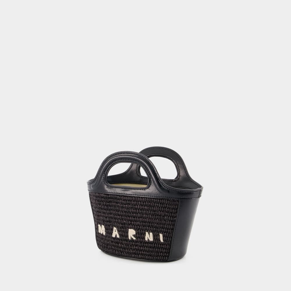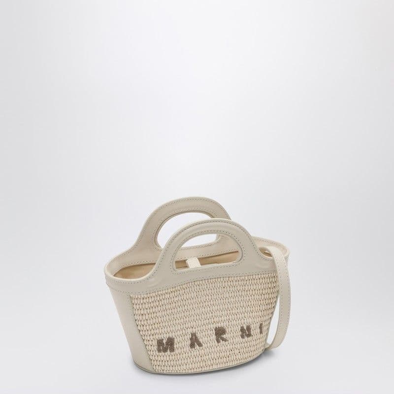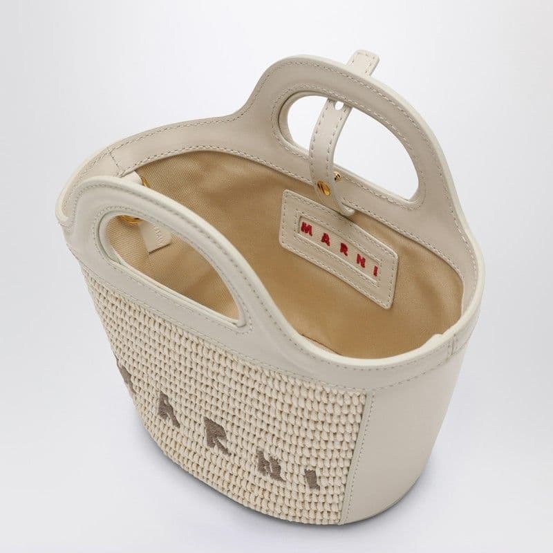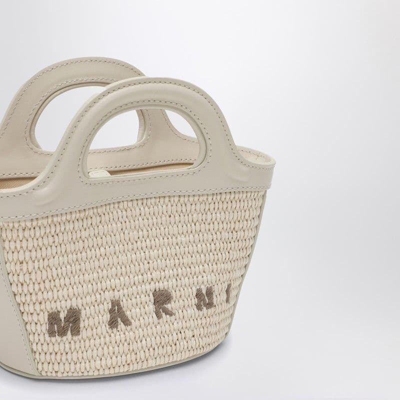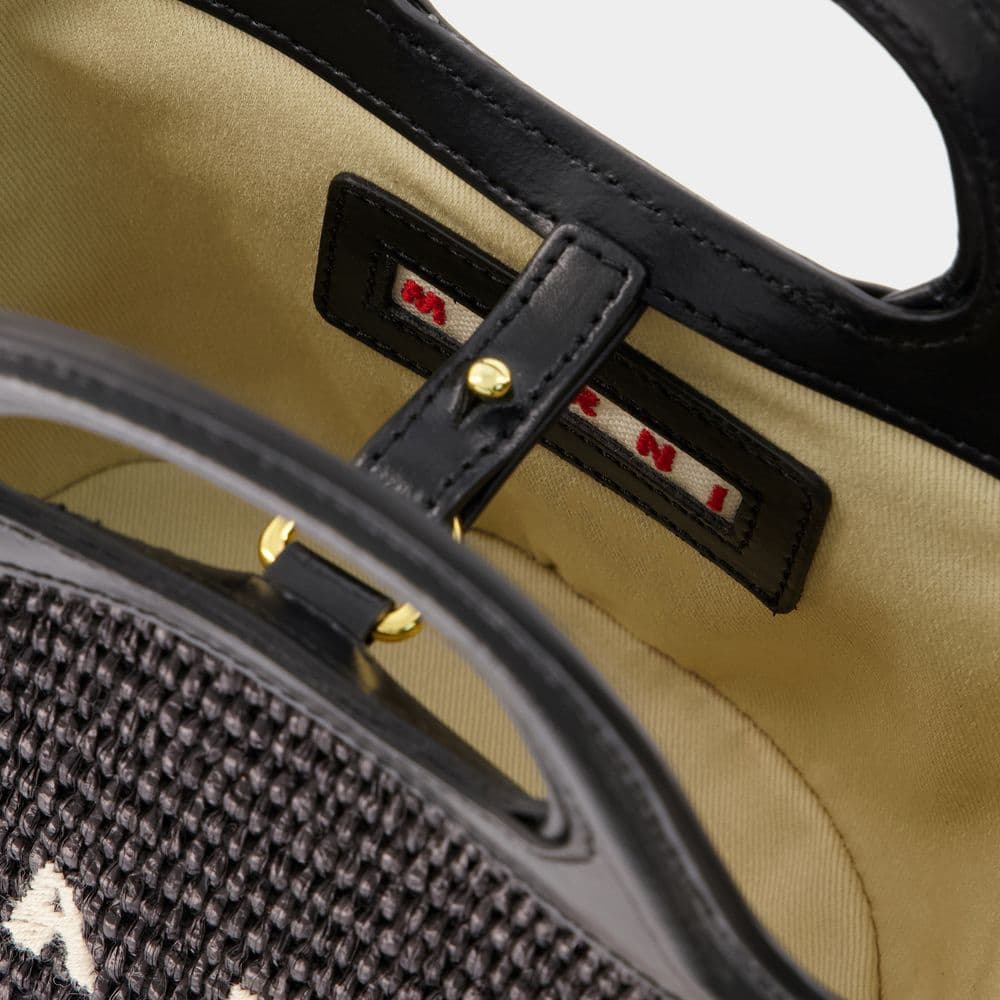 MARNI Tropical-Inspired Bucket Handbag with Raffia Panels and Leather Details