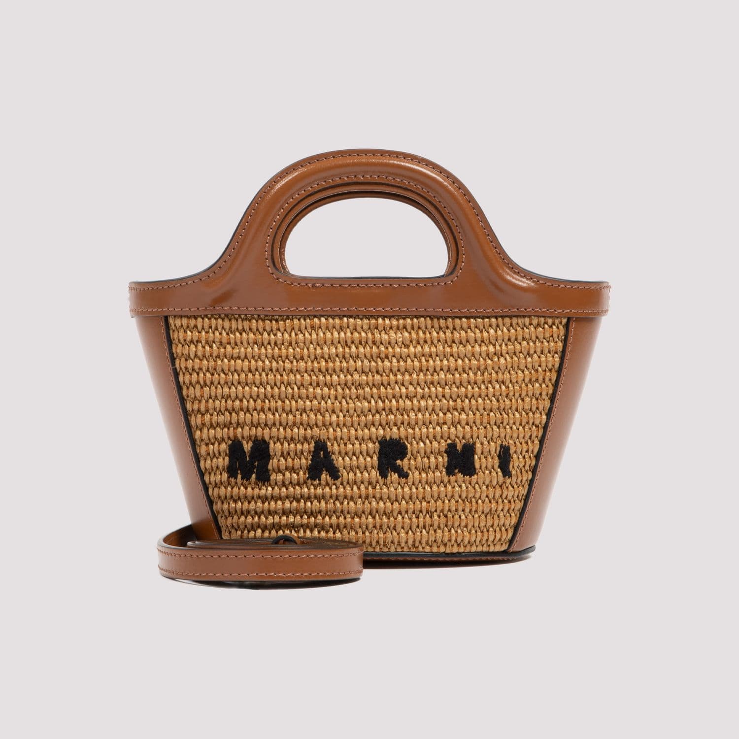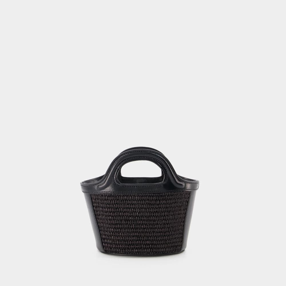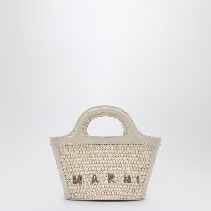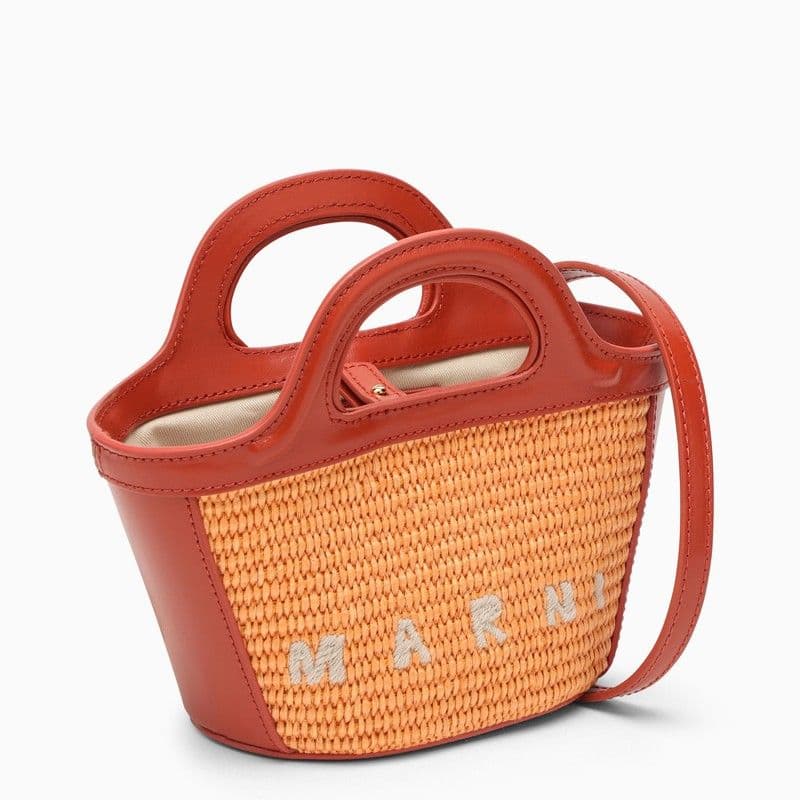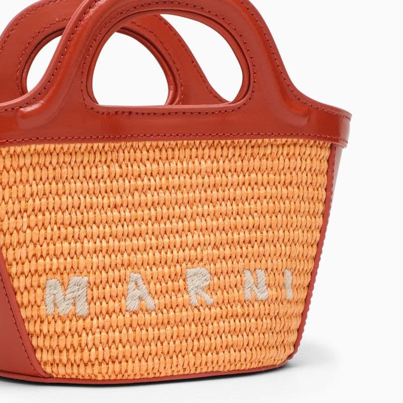 MARNI Tropical-Inspired Bucket Handbag with Raffia Panels and Leather Details