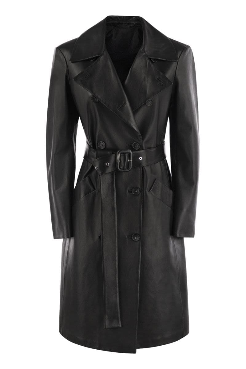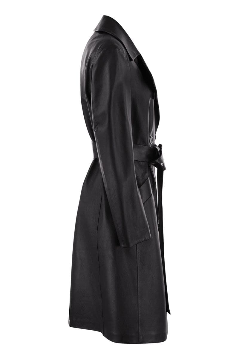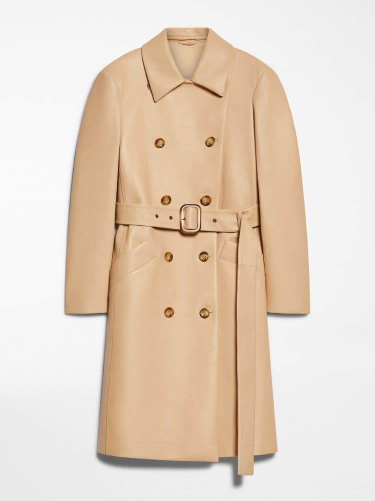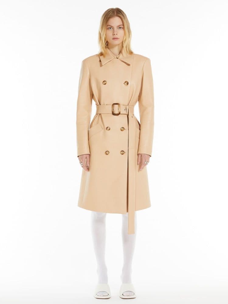 MAX MARA SPORTMAX Luxury Soft Leather Trench Coat with Geometric Pockets