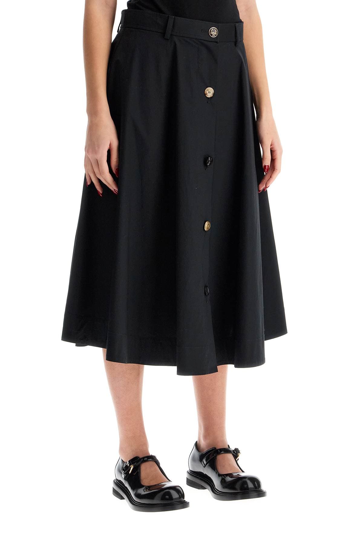 MOSCHINO COUTURE Chic Poplin Midi Skirt with Assorted Buttons - Size 40