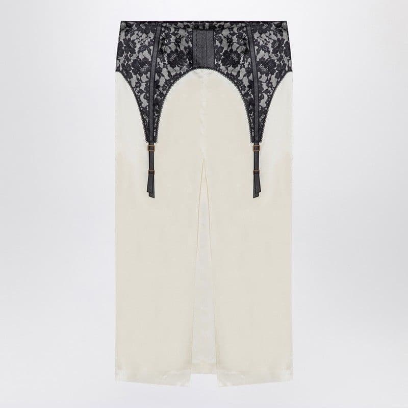 MOSCHINO COUTURE Elegant Ivory Midi Skirt with Lace Detail