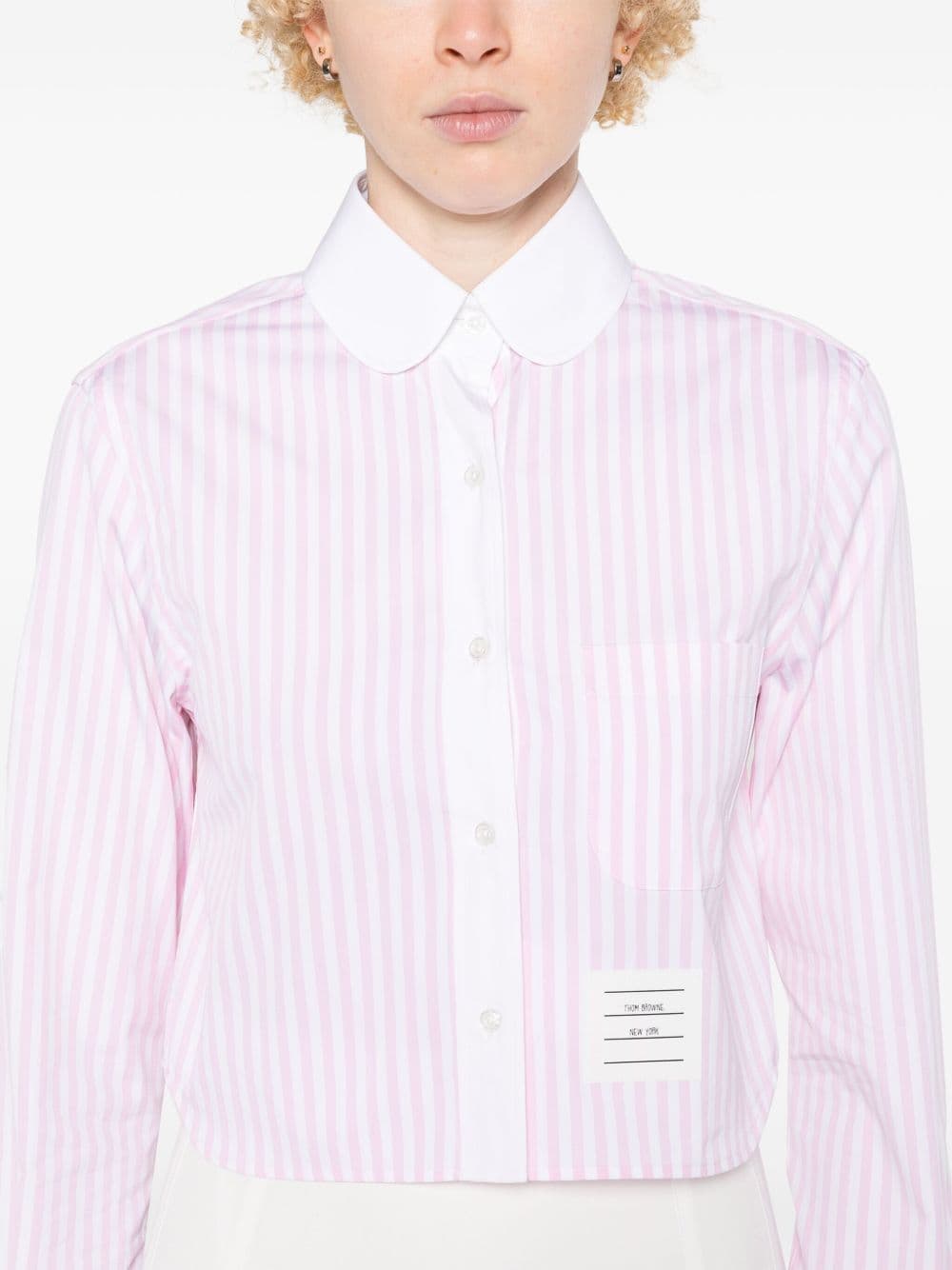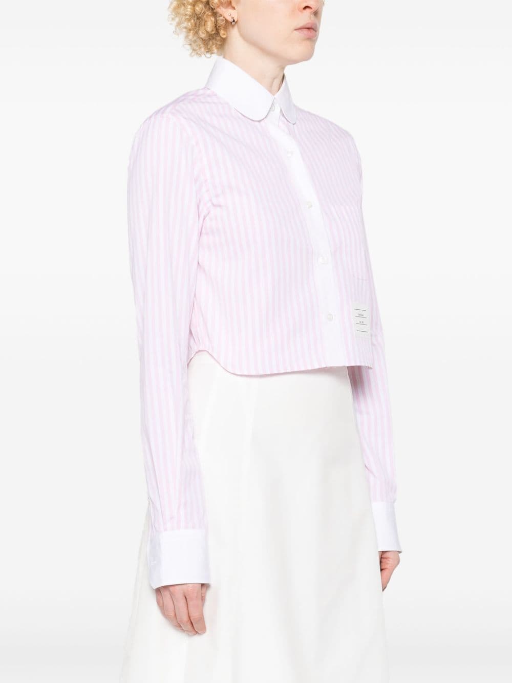 THOM BROWNE Cotton Cropped Shirt with Signature Logo Patch