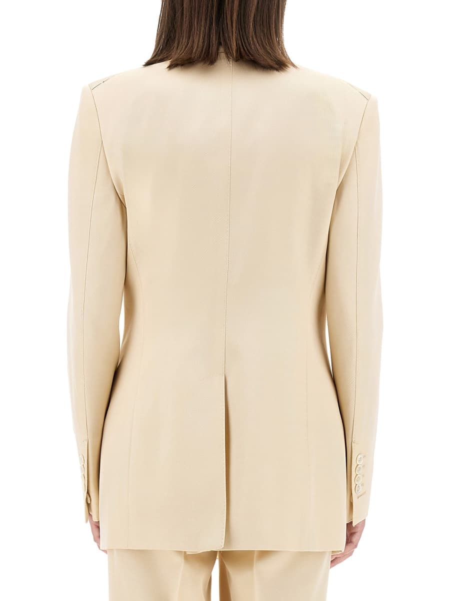 - MaterialsFabric: 89%VIRGIN WOOL - 11%Polyester / Lining: 59%Cupro - 41%Silk / Button: 100%Mother of Pearl