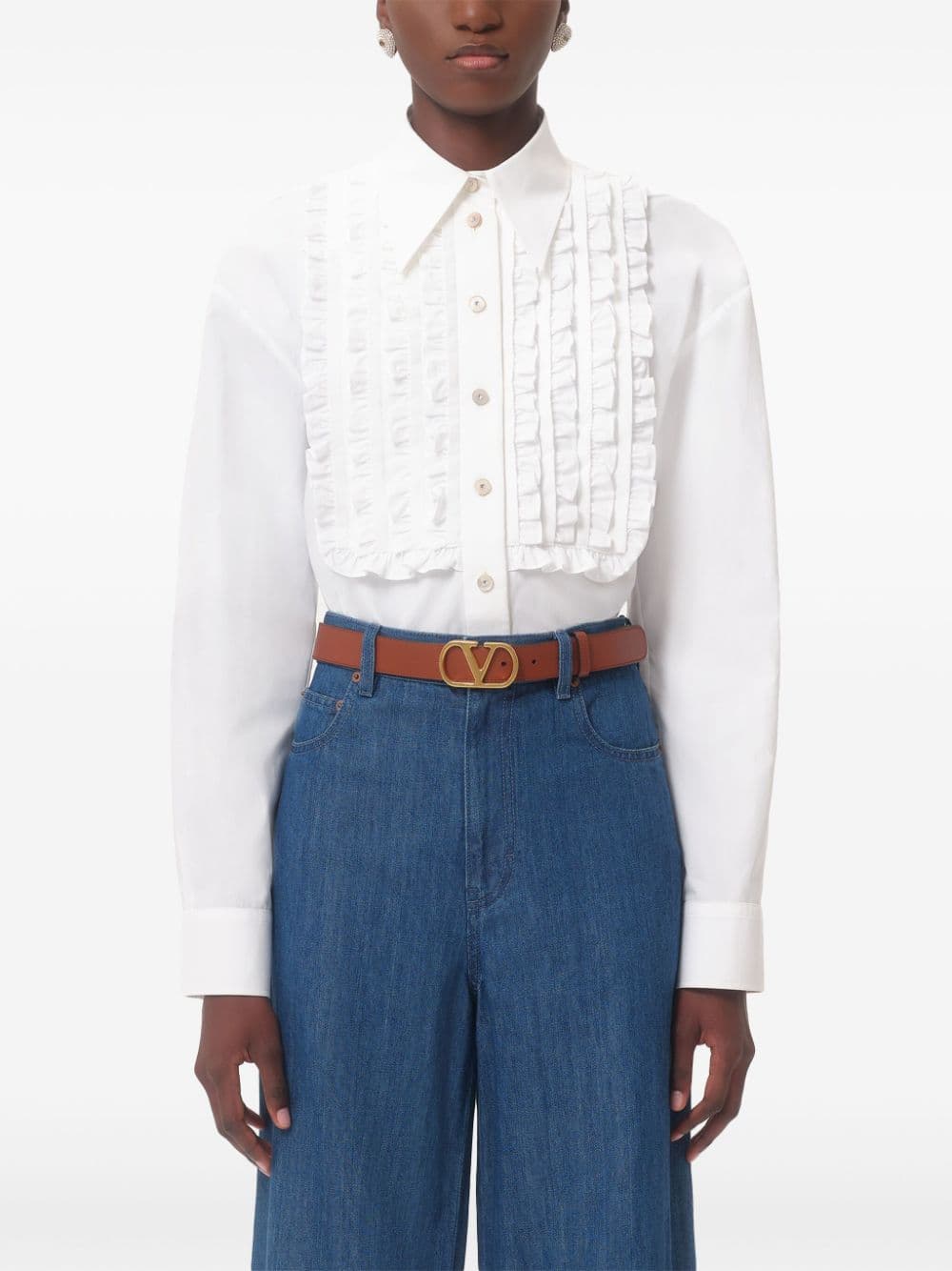 VALENTINO Women's Ruffled Cotton Poplin Shirt