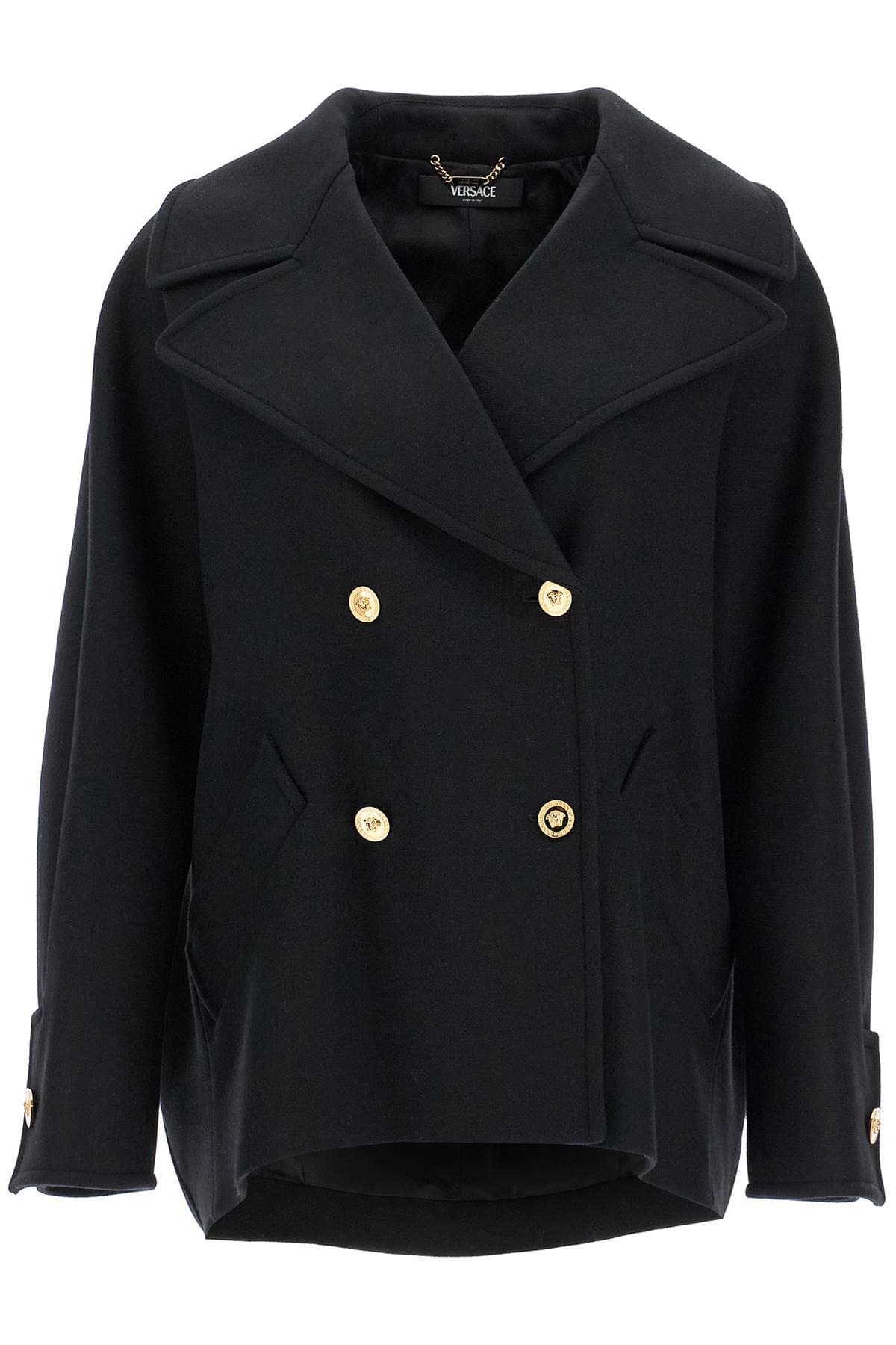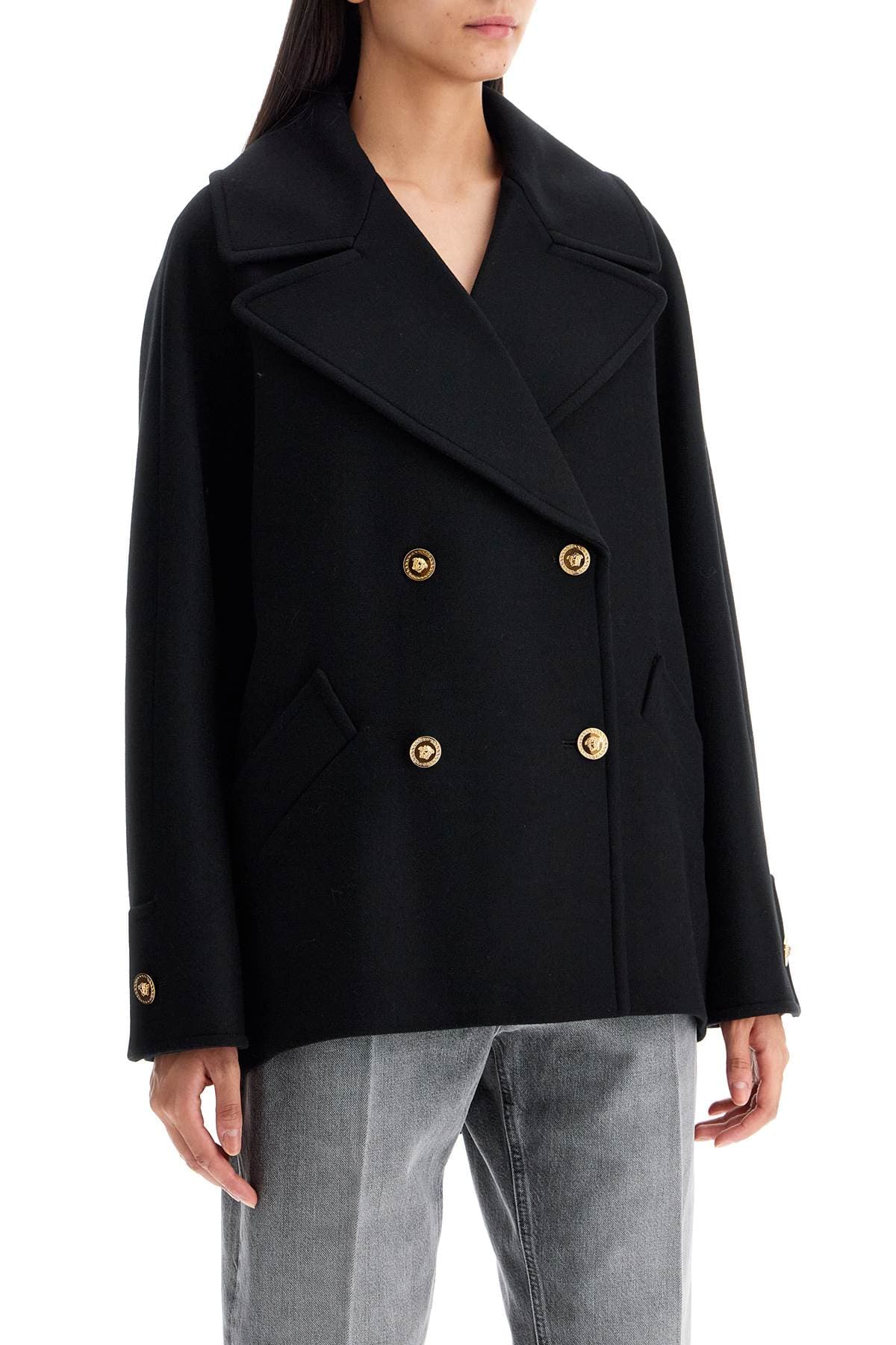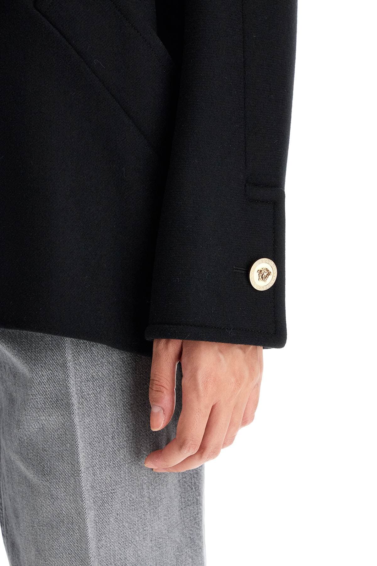 VERSACE Elegant Double-Breasted Wool Blend Cocoon Jacket