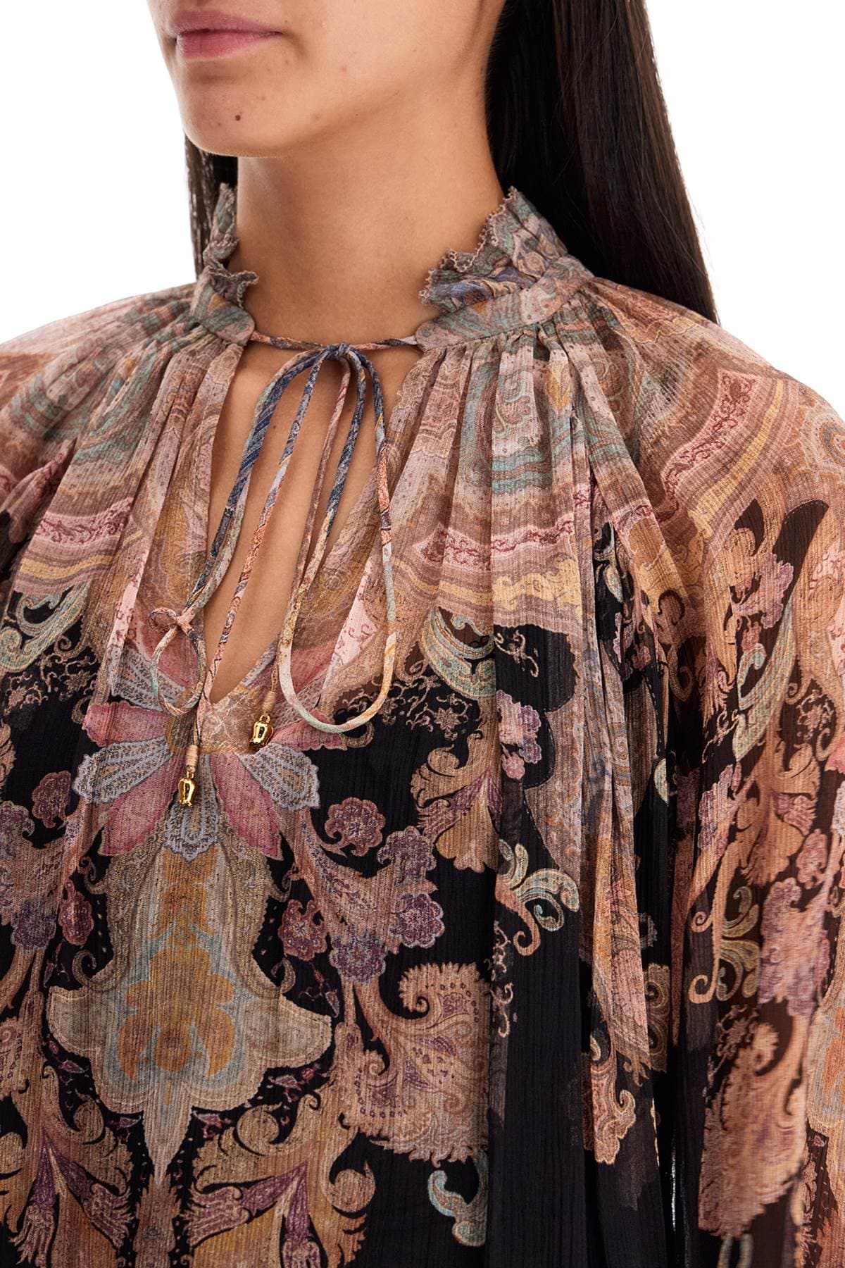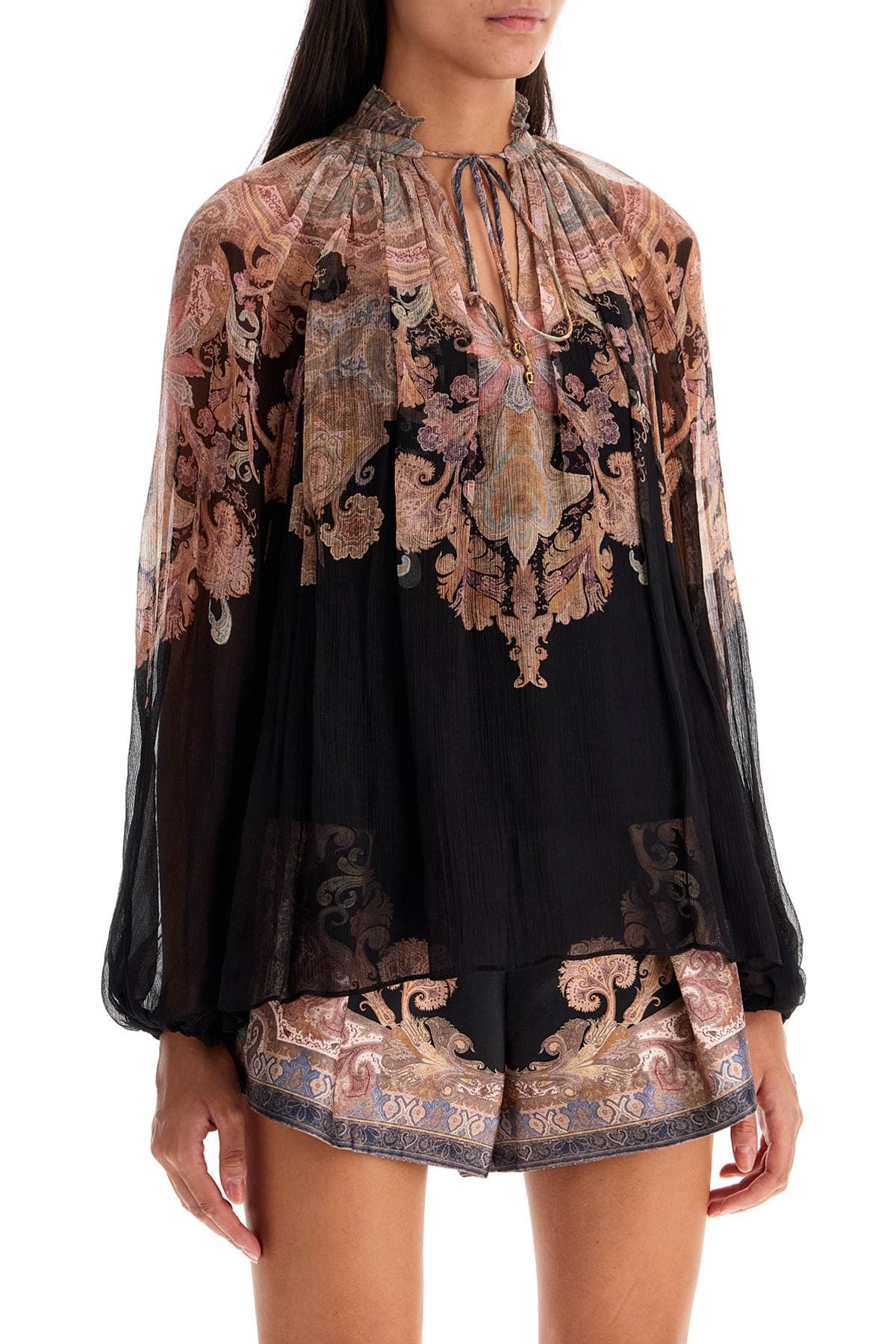 ZIMMERMANN Billowing Floral Blouse with Puffball Sleeves (Sizes 0-4)